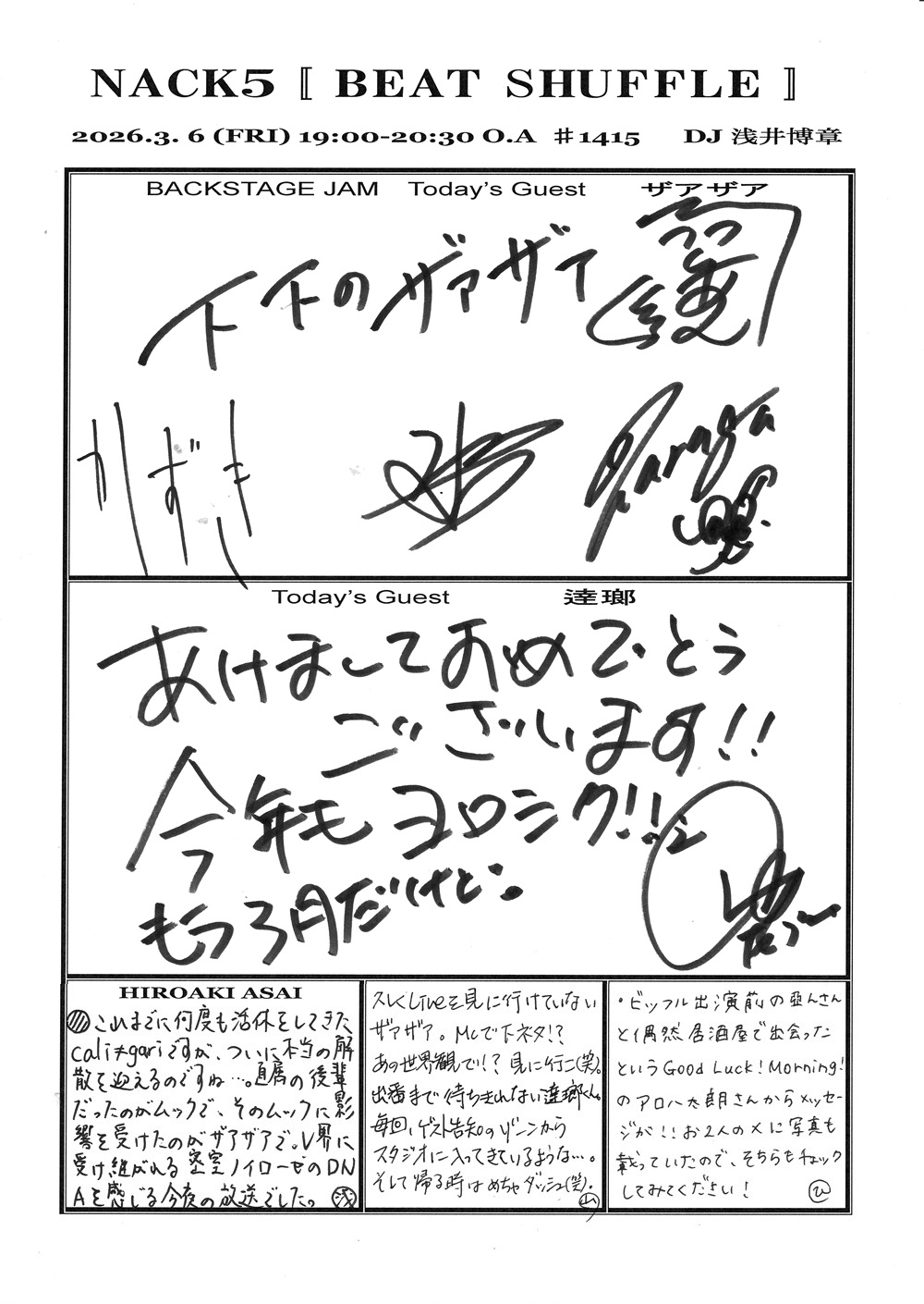 BEAT SHUFFLE EXTRA 2026.03.06 ザアザア / 逹瑯