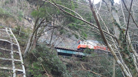 山あいを走る箱根登山電車(モハ1形ではありません)