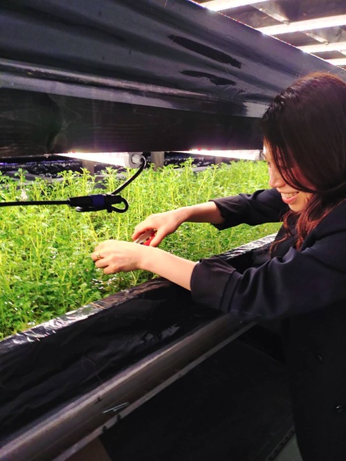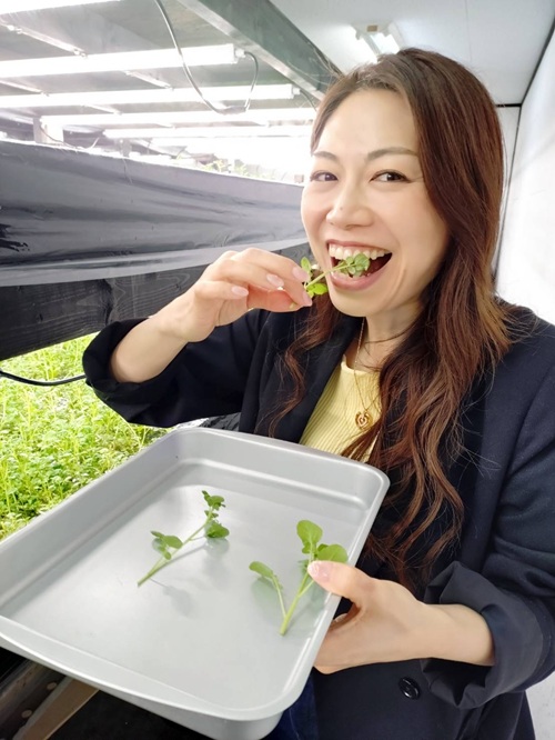 朝霞倉庫で水耕栽培されているクレソンを収穫!