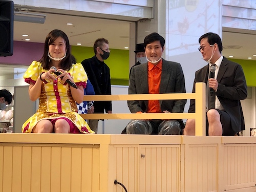 お笑いコンビ「きつね」の大津広次さん、淡路幸誠さんと、