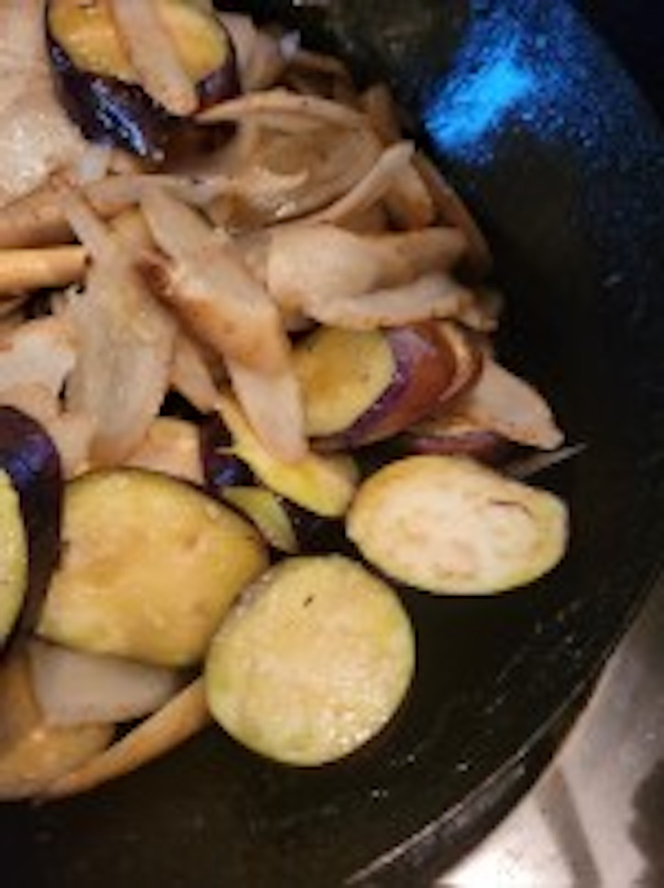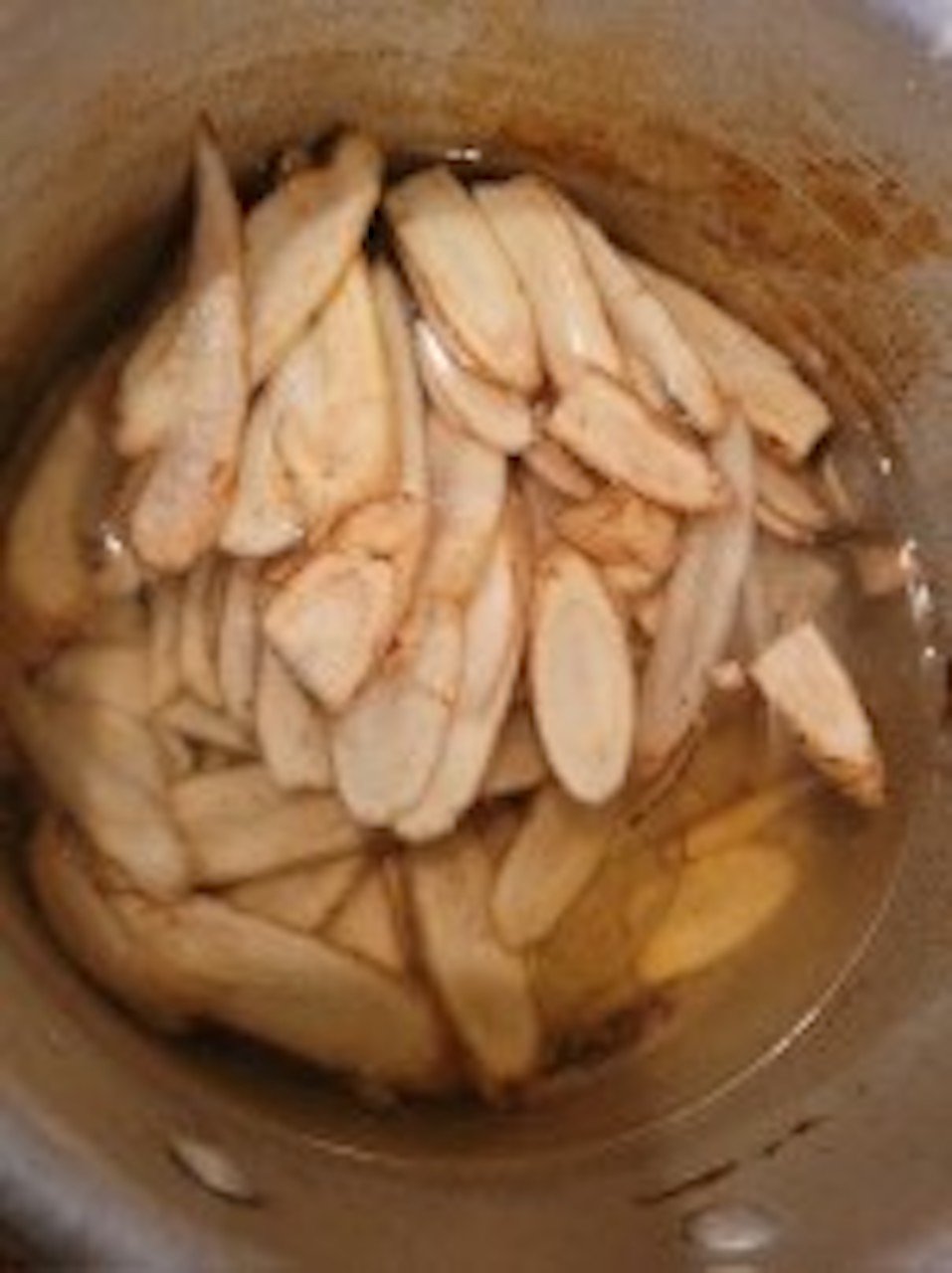 スライスしたゴボウを入れて沸騰し、