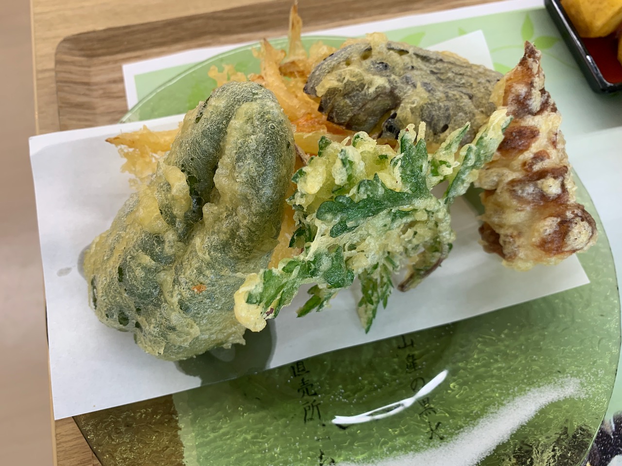 鳩山町で採れた新鮮な野菜の天ぷらもついて