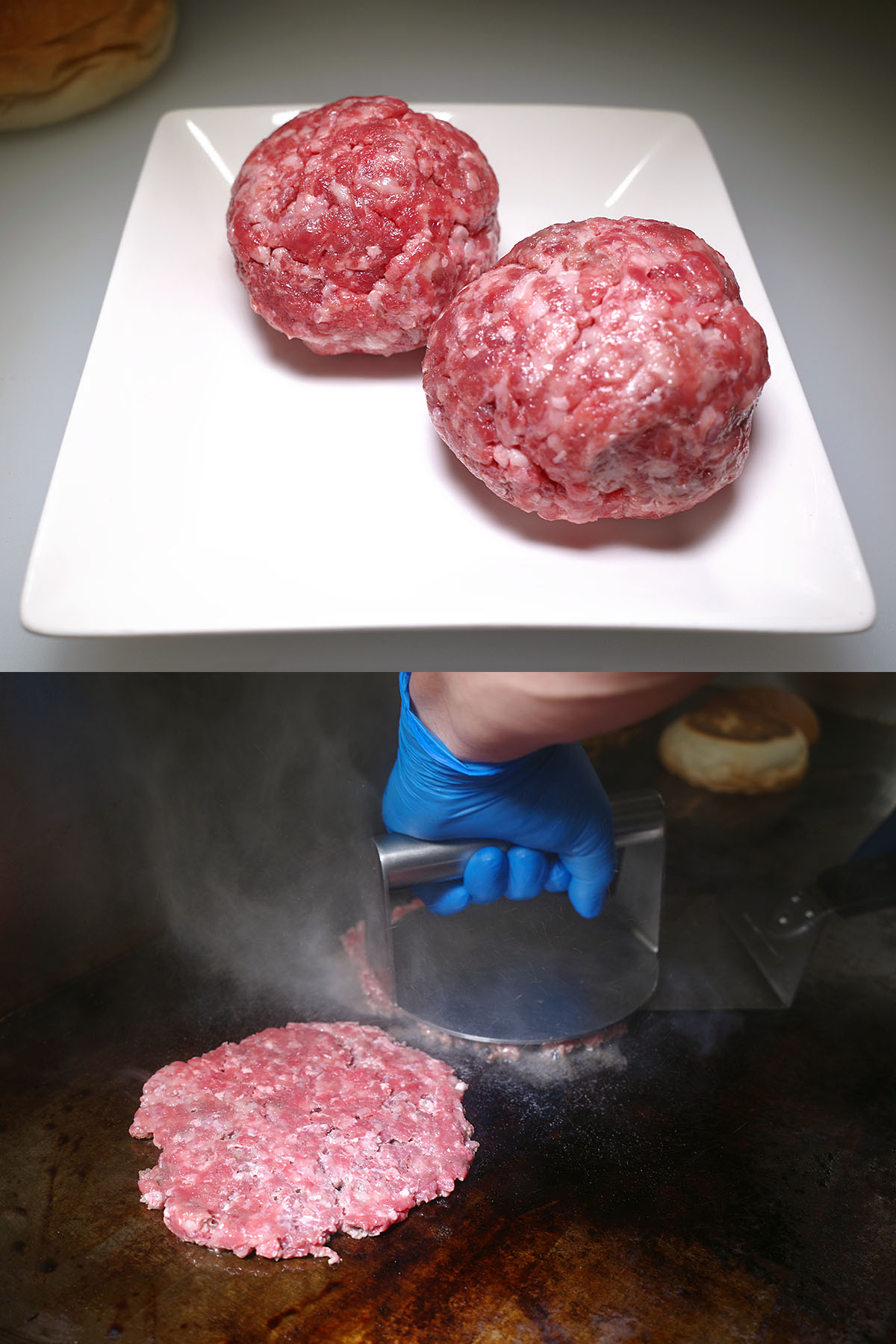 丸めた挽肉を上から潰して焼く調理法のバーガーです。
