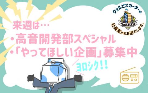 ウォルピスカーターの社長室からお送りします。