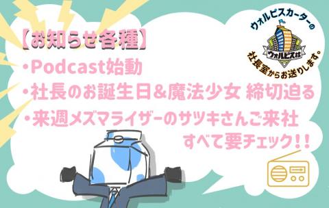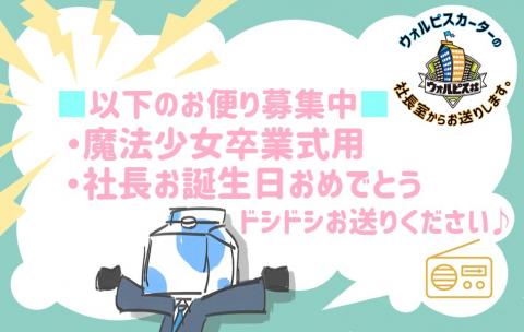 ウォルピスカーターの社長室からお送りします。