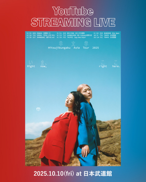 ロックバンド・羊文学が10月10日に開催する日本武道館公演を、YouTubeにて一部生配信することが決定した。同公演は、最新アルバム『D o n’ t L a u g h I t O f f』の発売を記念して行われるアジアツアー『Hitsujibungaku Asia Tour 2025 "いま、ここ (Right now, right here.)"』のファイナル公演にあたる。