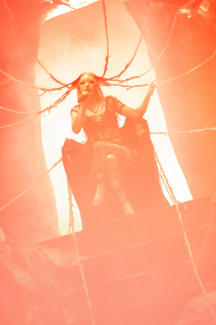 ライブ冒頭、ステージ上のスクリーンに黒雲や溶岩、大地から噴き上がるマグマといった不穏な映像が映し出される。幕が降りると、ステージには洞窟のようなセットが出現し、その中央に黒い衣装をまとって岩肌に鎮座するちゃんみなが登場。髪はメデューサのように四方へ伸び、岩肌とつながっている。
