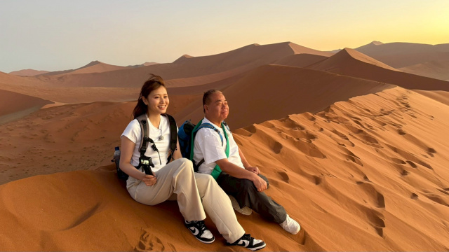 最初に襷を託された出川哲朗と塚本恋乃葉が向かったのは、アフリカ大陸の南西に位置するナミビア共和国。「とにかく遠い!」と出川が言うように、2人は2回のトランジットを経て、計30時間近くをかけてようやく到着した。さらに、目的地の世界遺産・ナミブ砂漠までは車で6時間。しかし、二人はそんな疲れも見せず、ナミビアならではの絶景や、珍しい動物たちを至近距離で目のあたりにし、感動する。