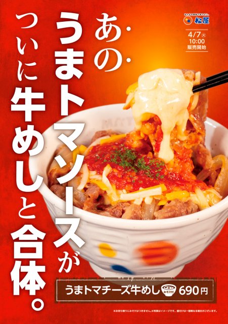牛めし・カレー・定食・その他丼の「松屋」は、7日午前10時より『うまトマチーズ牛めし』を販売する。