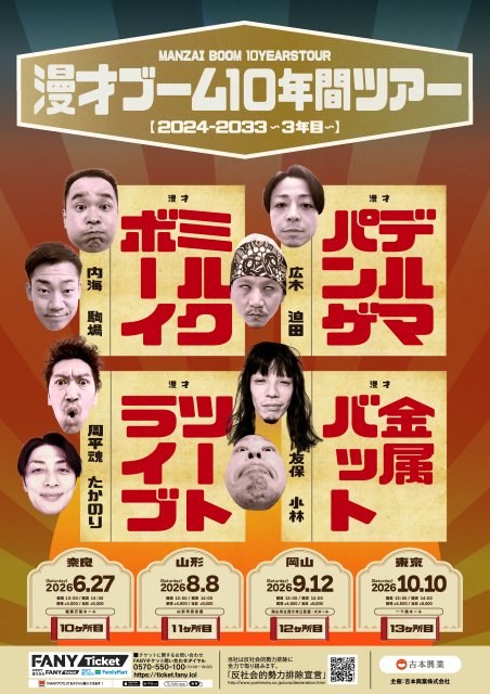 今年もやってきました漫才ブーム10年間ツアー!3年目は奈良→山形→岡山→東京と4ヶ所でベシャりに行かせてもらうニュアンスでございます。正味ぜひ!