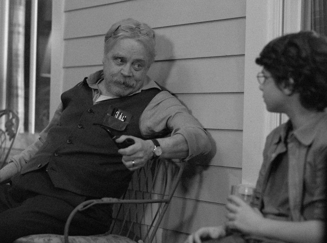 一方で、書斎で居眠りする祖父にそっと近づくチャックや、暗がりの中でドアに耳を押し当てる姿も映し出され、日常の静けさの中に不穏な気配が差し込む──祖父には、物語の核心に関わる“ある秘密”が隠されているようだ。